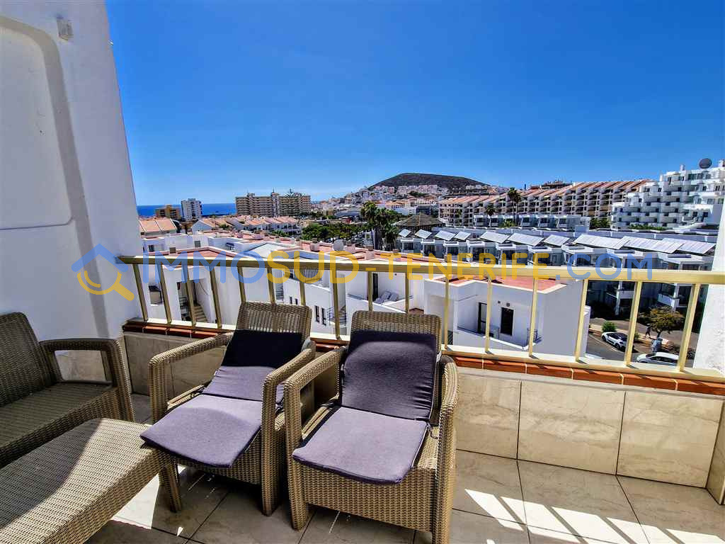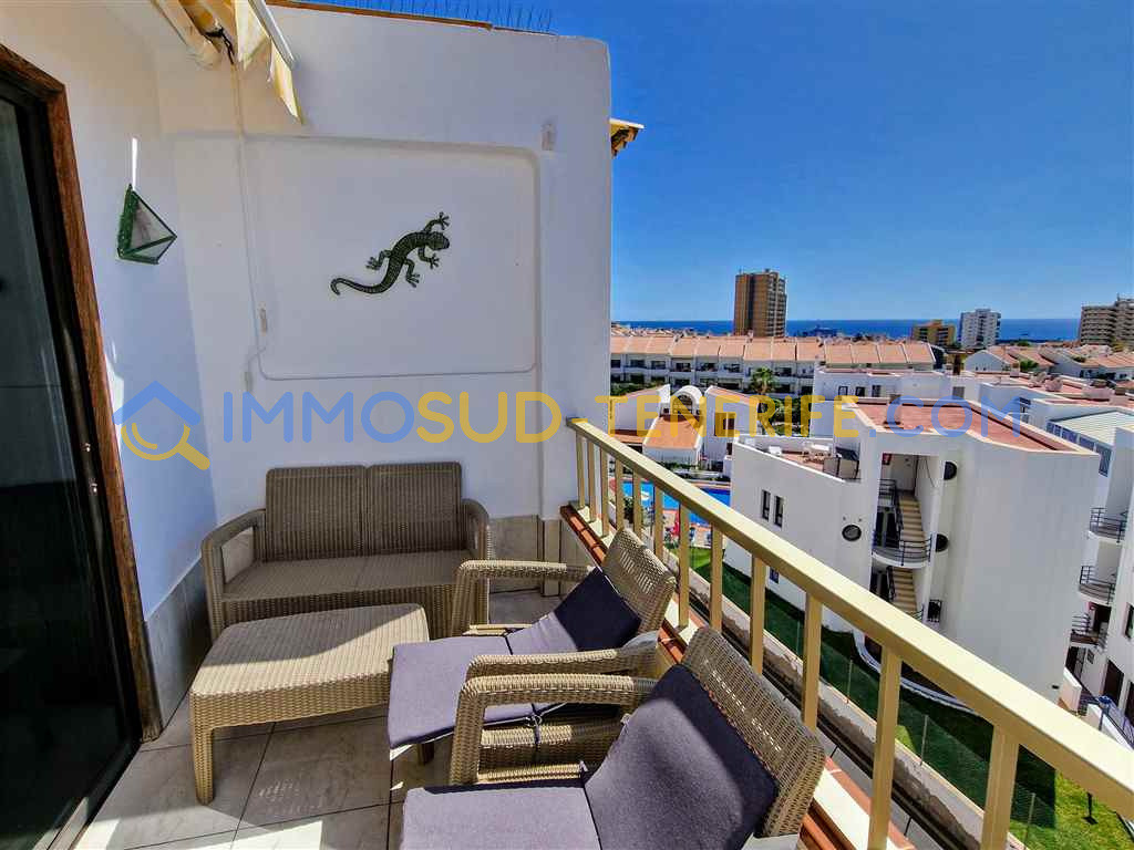 Immosud Tenerife SL präsentiert dieses 1 -Schlafzimmer, das in ein Penthouse mit 2 Schlafzimmern mit Terrasse und Meerblick in einem schönen Resort mit einem Schwimmbad und Aufzügen verwandelt wurde.