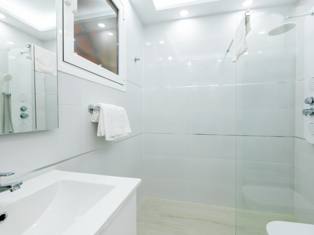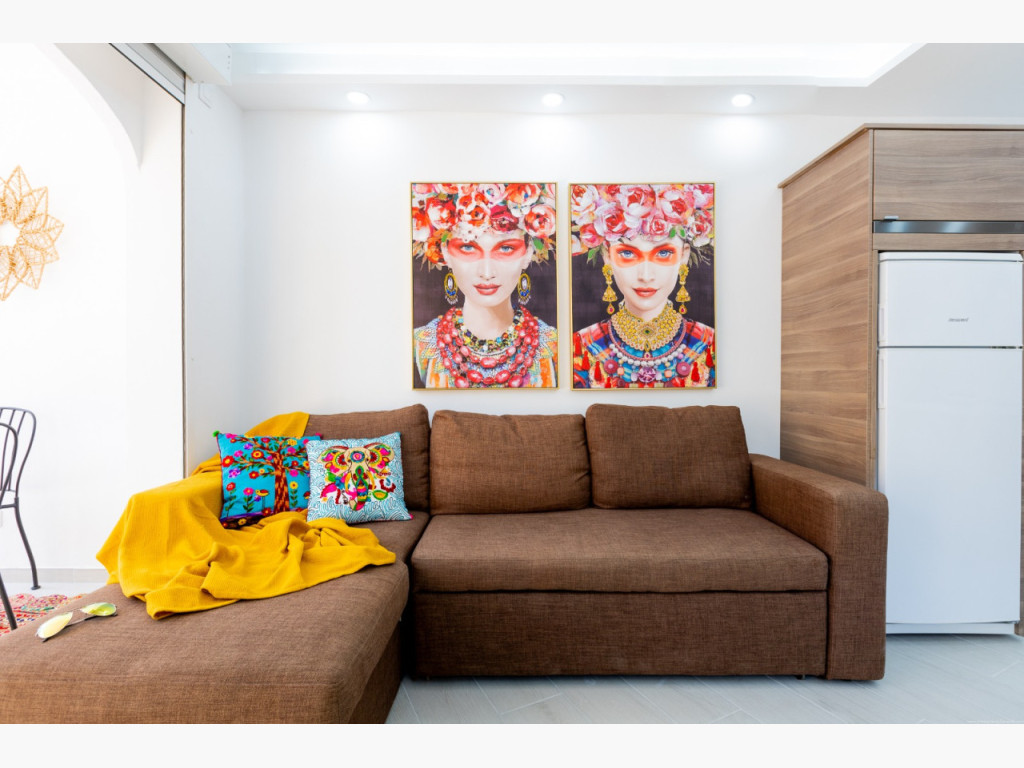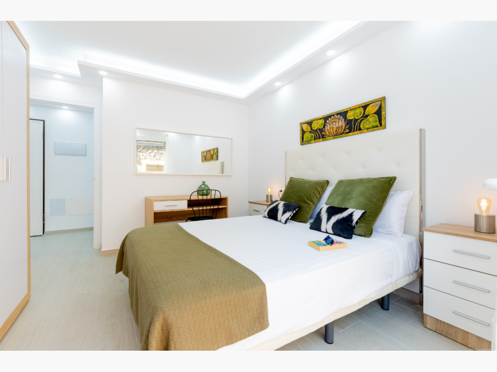 ein geräumiges Apartment mit 2 Schlafzimmern, 1 Badezimmer mit Badewanne, einem großen Wohn-Esszimmer mit offener Küche und einer großen 110 m2 großen Terrasse mit Meerblick, auf der Sie das ganze Jahr über die Natur genießen können.