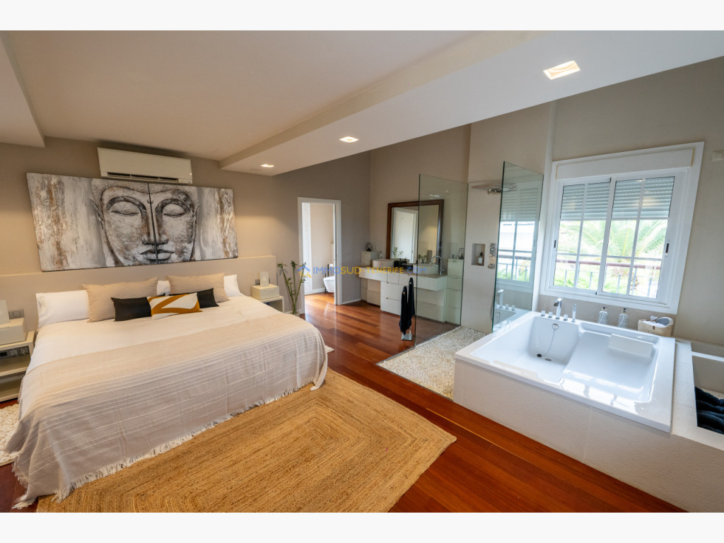 On the upper floor there is the master bedroom and a complete bathroom with a shower and bathtub, as well as another toilet. Villa For Sale ( Madroñal de Fañabe ).