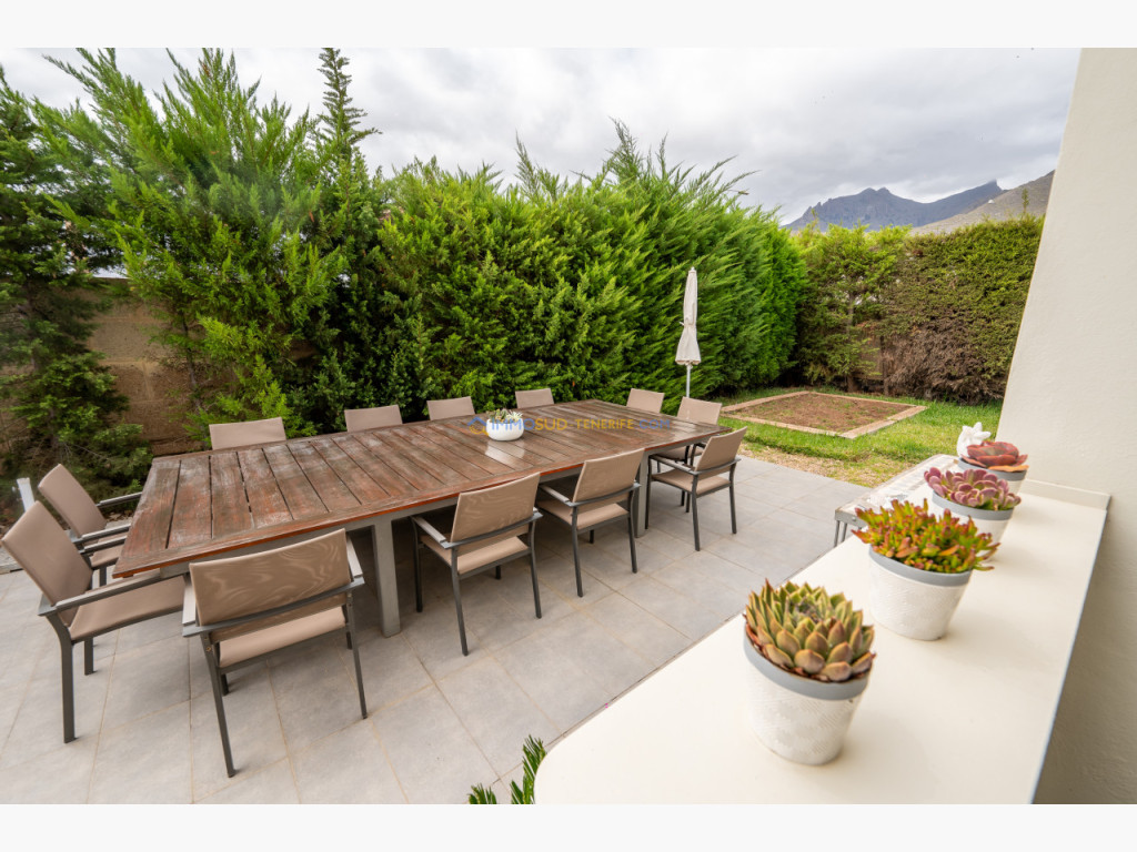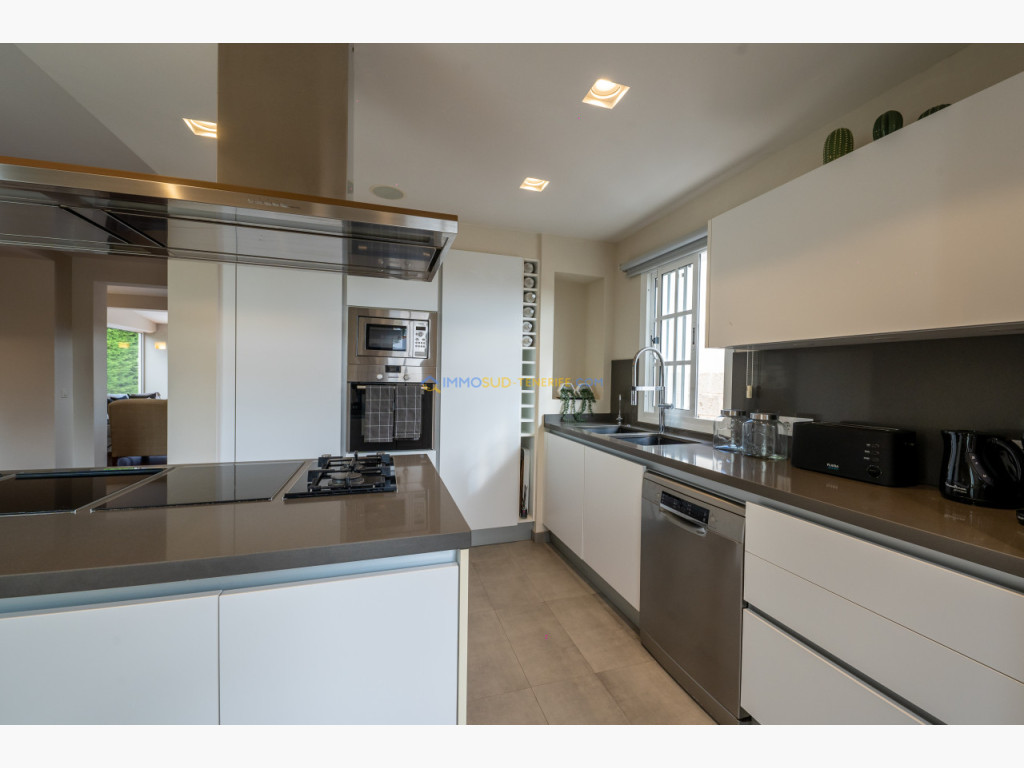 On the ground floor, we find the living-dining room with a large kitchen equipped with an island, as well as a toilet.