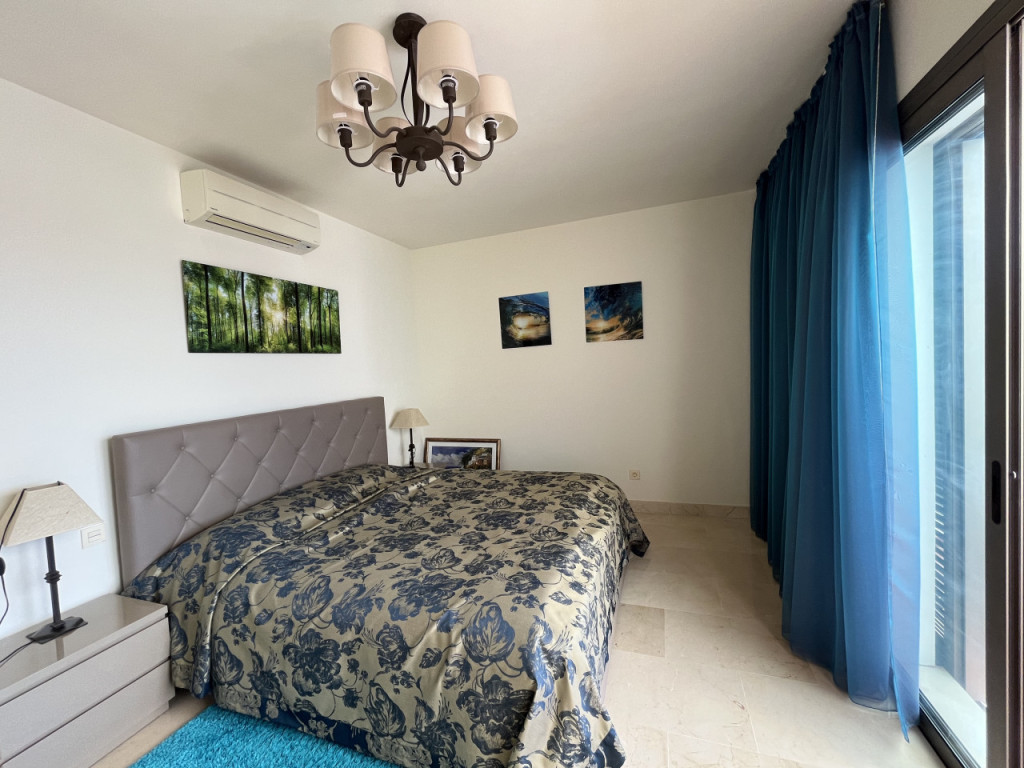 esta bonita propiedad con 2 piscinas (1 climatizada), con una gran terraza y vistas al mar, situada en la mejor residencia de la isla.