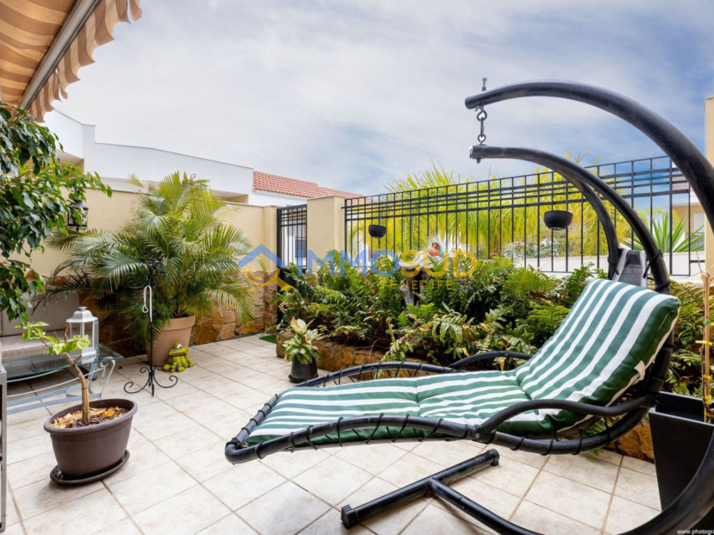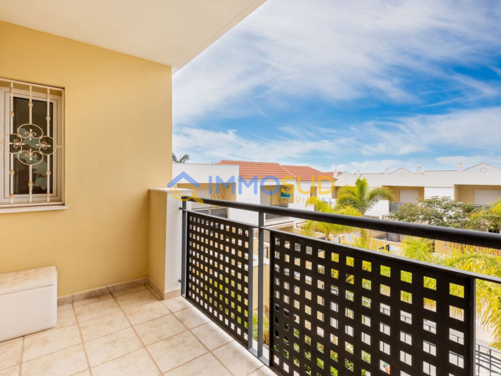 esta magnífica casa adosada con una superficie total de 285m2, ubicada en una de las zonas más populares del sur de Tenerife, Madroñal Costa Adeje, en un complejo con piscina.