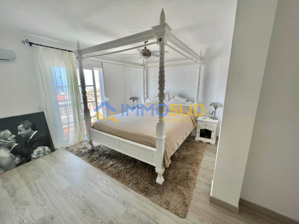 En la misma planta se encuentra una cocina totalmente equipada, baño de visitas, amplio salón que da a la terraza principal, con una pequeña vista al mar y a La Gomera.