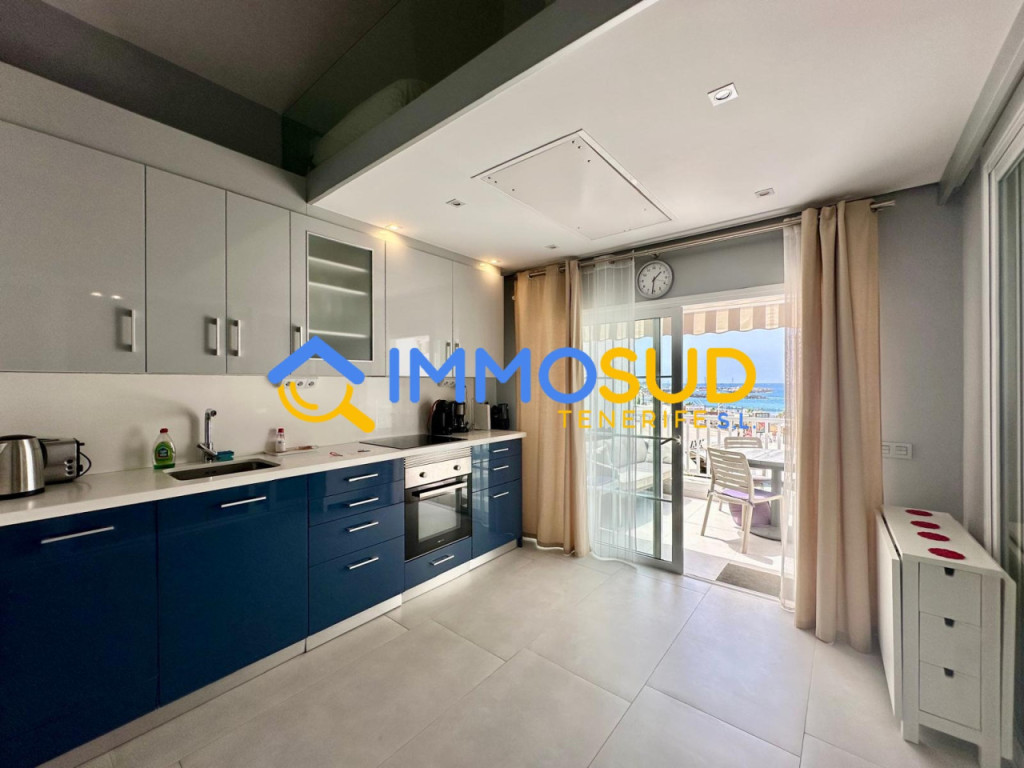 este piso cuenta con una amplia habitación principal (con un pequeño balcón y armarios empotrados), dos baños (con plato de ducha), salón que se cierra con puertas de cristal y se convierte en una habitación más, y cocina americana totalmente equipada (horno, lavavajillas, lavadora, etc.). La terraza de 12 m² tiene vistas al océano.