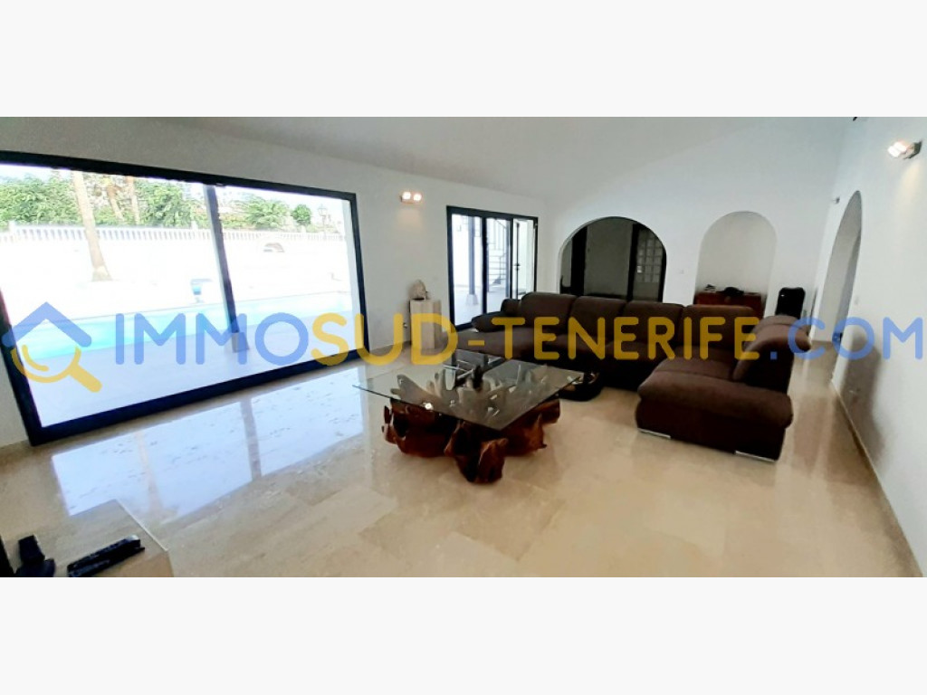 "Immosud Tenerife Sl" vous présente cette magnifique villa entièrement rénovée sur un terrain de 1400m2, avec piscine privée chauffée et une annexe avec entrée indépendante pour les invités.
