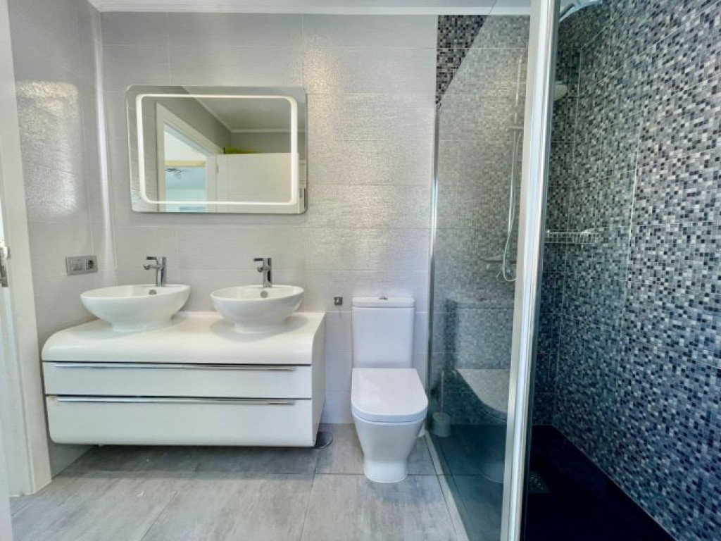 "Immosud Tenerife S.L." vi presenta questa casa indipendente in un complesso privato situato a San Eugenio. La proprietà è distribuita su 2 livelli offrendo 3 camere matrimoniali padronali con bagno privato e accesso alla terrazza. Zona giorno a pianta aperta con cucina completamente attrezzata, soggiorno e sala da pranzo, accesso di nuovo ad una terrazza soleggiata di buone dimensioni. La proprietà beneficia di una piscina privata riscaldata, aria condizionata ovunque, garage privato e ripostiglio, ed è a pochi passi dal cuore di San Eugenio e dal mare. Una rara opportunità di trovare una proprietà indipendente a San Eugenio.